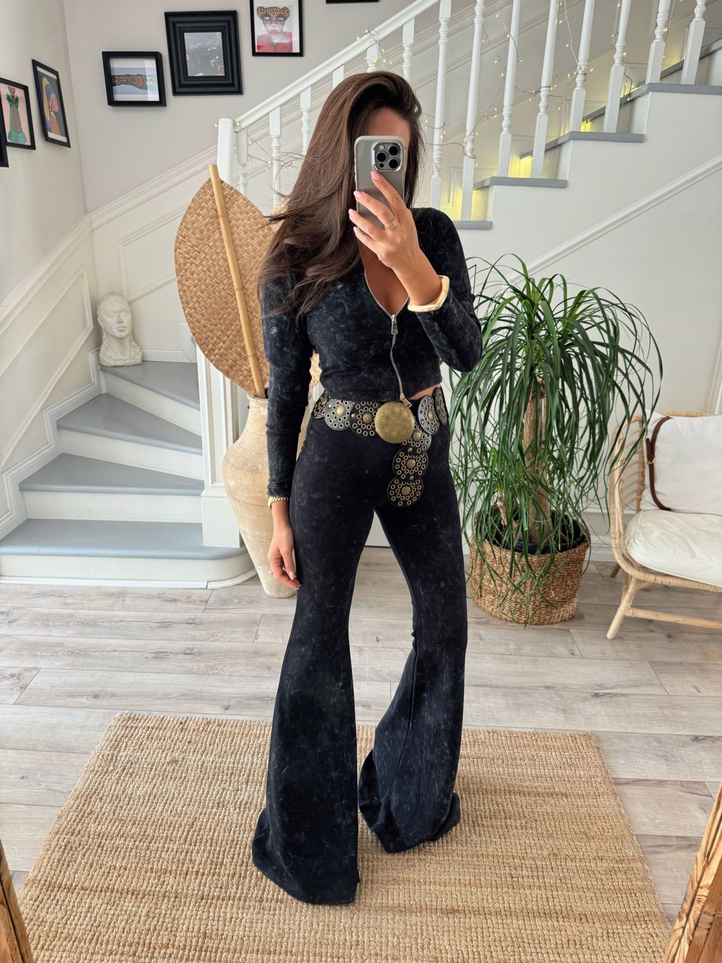 10 cm topuklu ayakkabı ile çekilmiştir , paça boyu uzundur.
